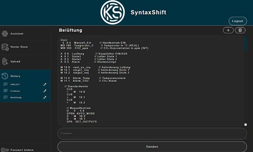 - SyntaxShift von KS Solutions AG: KI-basierte Code-Konvertierung für verschiedene SPS-Standards (z. B. Siemens IL, SCL ↔ CODESYS ST)