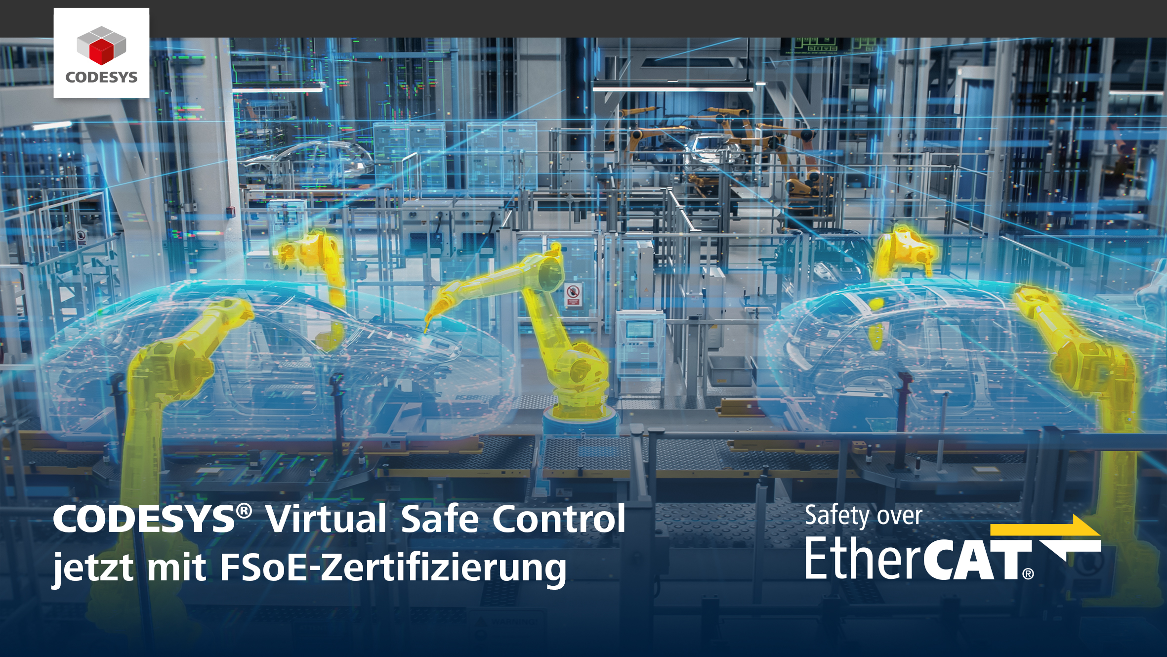 Kempten, März 2026: Als erste virtuelle Sicherheitssteuerung weltweit ist CODESYS Virtual Safe Control SL nach IEC 61508 SIL3 für die Nutzung mit FSoE (EtherCAT Safety) zertifiziert.